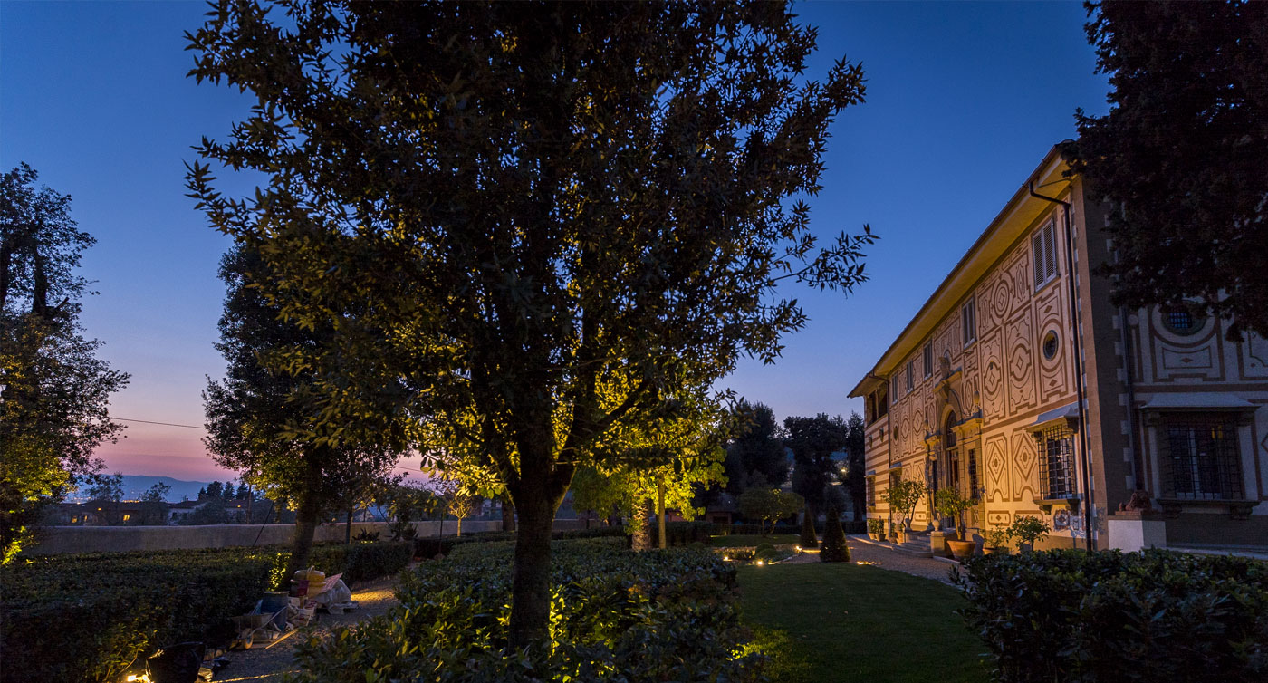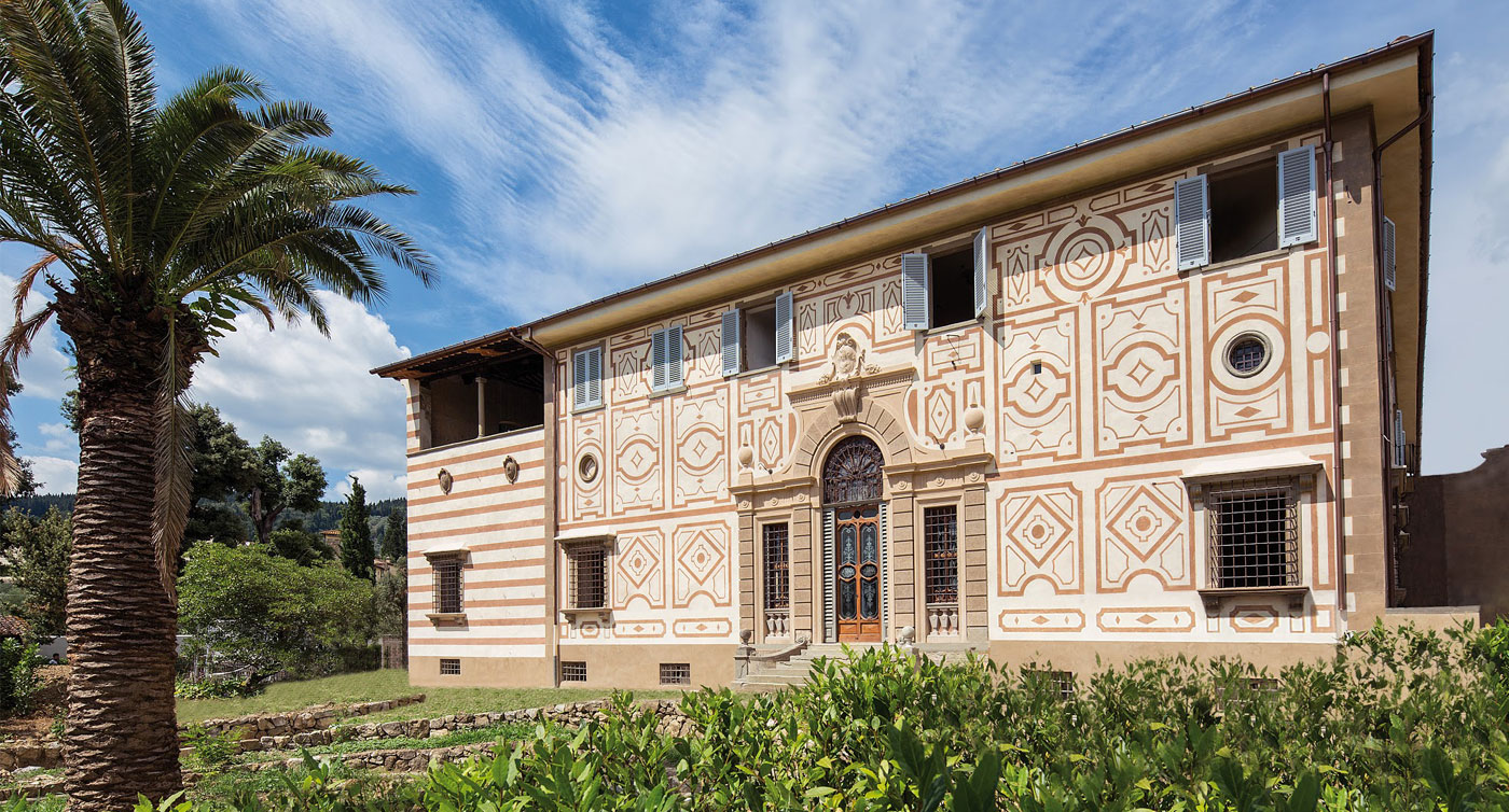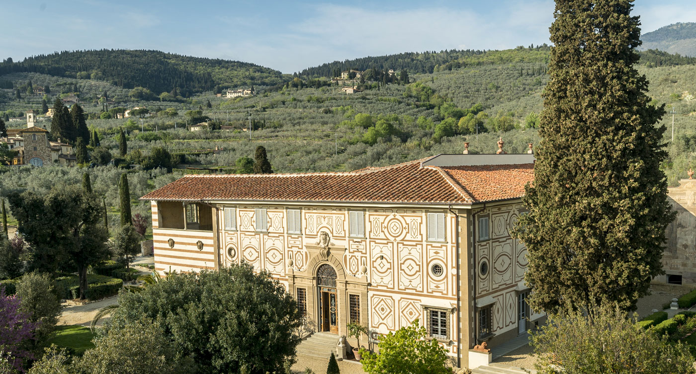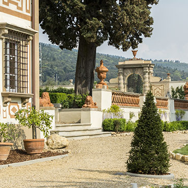 The grand piano nobile with two ornate bedrooms boasts renowned historic interior details such as vaulted-caisson ceilings, two antique fireplaces and frescos throughout. This is the premiere apartment in the Villa Capponi offering a rare jewel of a residence with grand stairs onto the formal gardens. A truly noble apartment.